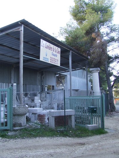 Nous utilisons plus largement une pierre assez dure qui est extraite dans nos propres carrières sur le site de la Sine, à Vence. D'aspect blanc crayeux, cette pierre à grain fin se prête bien à la sculpture.